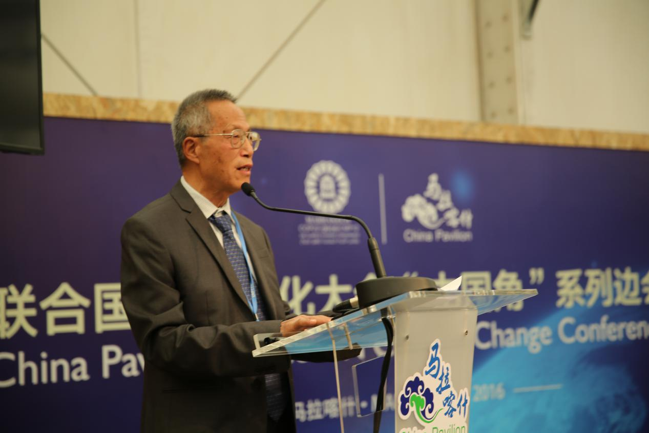 圖1 鄭保衛主任在2016年馬拉喀什聯合國氣候大會氣候傳播邊會上致辭