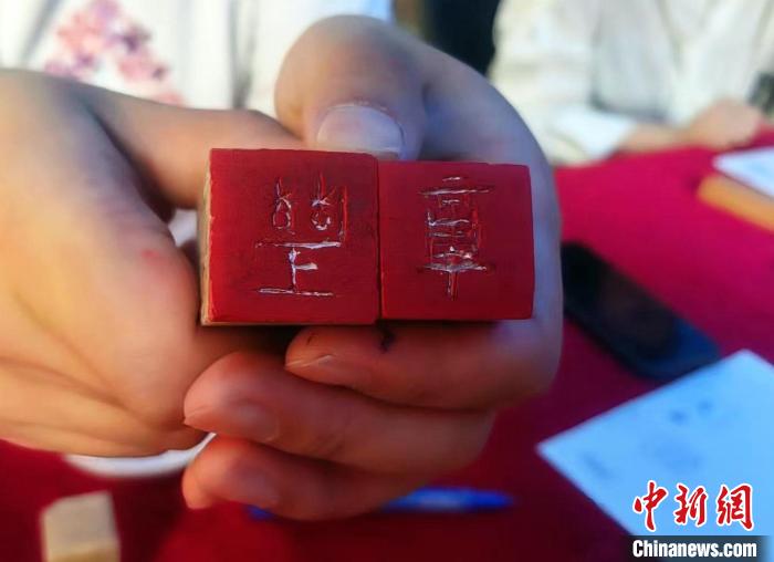圖為留學生展示篆刻作品?!V西大學國際學院供圖