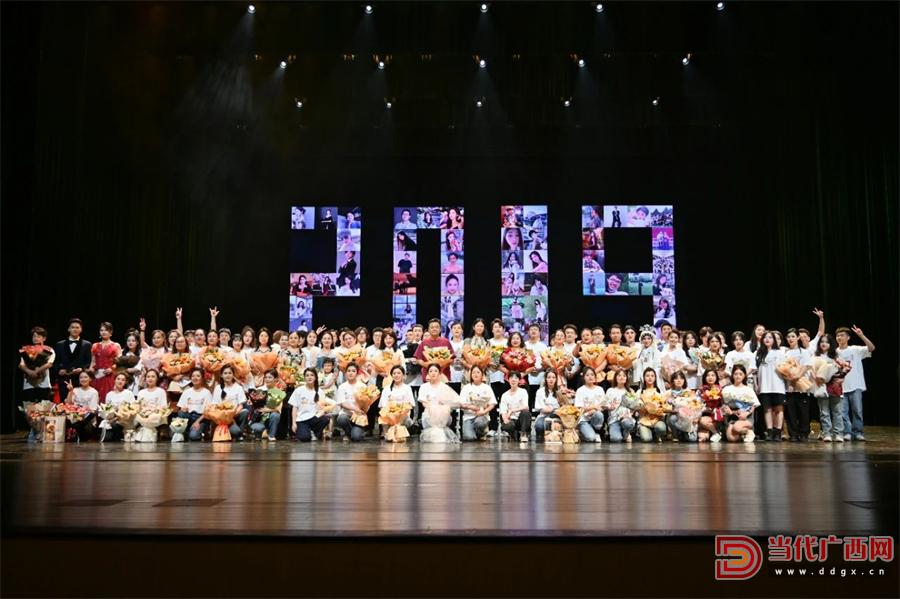 首屆廣西大學美育節暨2023藝術專業畢業展演活動現場師生合影留念。廣西大學供圖