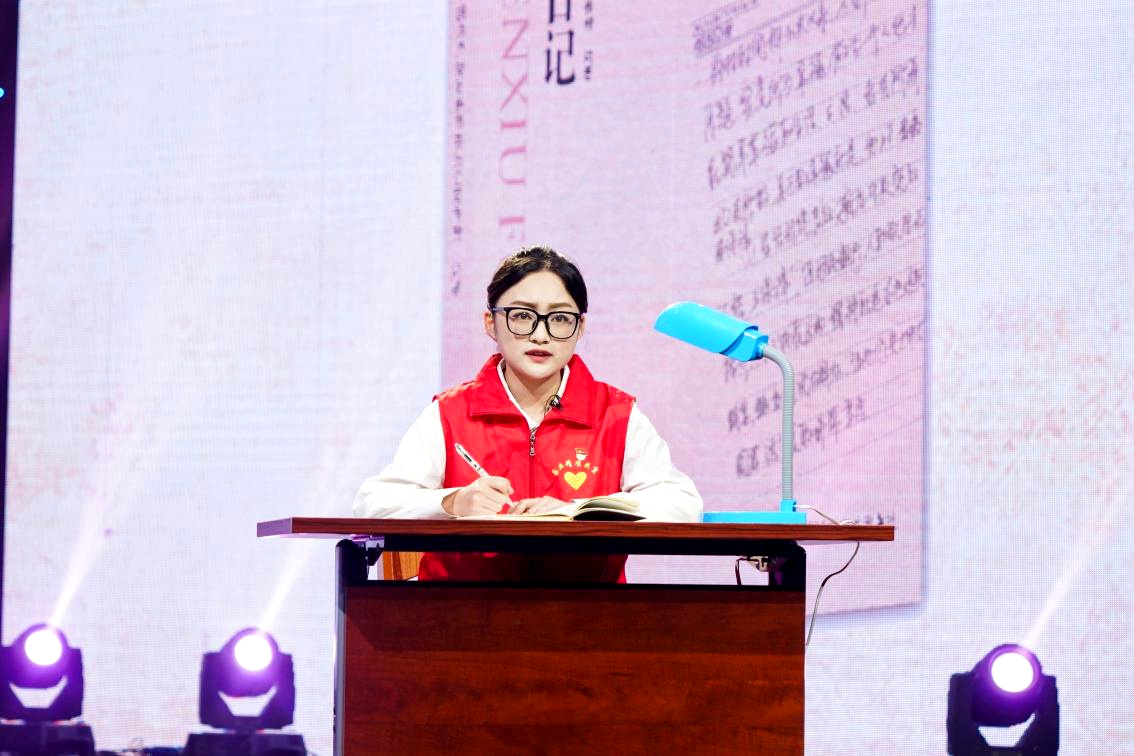 思政課最后,廣西歌手韋晴晴傾情演唱歌曲《文秀日記》。歌曲依據黃文秀的駐村工作日記進行譜曲創作,作品樸實動人,有著震撼人心的力量。
