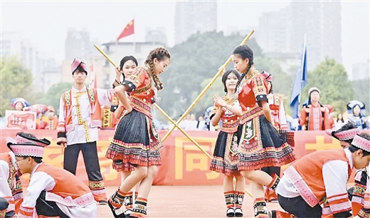 近日,廣西大學團委舉辦第十屆三月三民族文化體驗展示系列活動,千余名師生共同參與,沉浸式體驗少數民族文化的多彩魅力。(廣西大學供圖)
