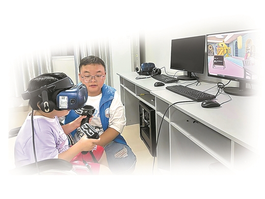 廣西幼兒師范高等專科學校愛撒星空志愿服務團隊創新孤獨癥譜系障礙VR訓練系統服務孤獨癥患者。李 芬/攝