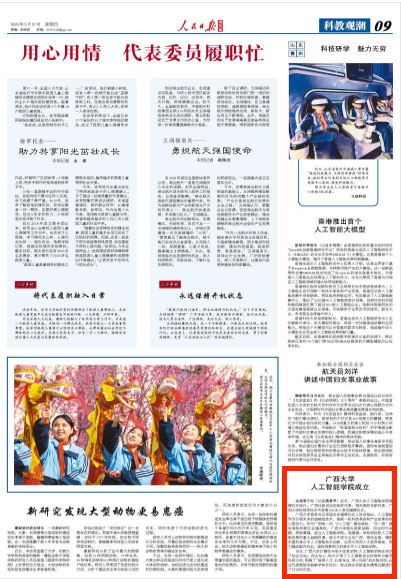 廣西大學(xué)黨委書記李國(guó)忠在揭牌儀式上講話指出,人工智能作為引領(lǐng)未來的戰(zhàn)略性技術(shù),是新一輪科技革命和產(chǎn)業(yè)變革的核心驅(qū)動(dòng)力。作為廣西唯一的“211工程”建設(shè)高校、“雙一流”建設(shè)高校和部區(qū)合建高校,廣西大學(xué)服務(wù)國(guó)家戰(zhàn)略、回應(yīng)時(shí)代命題,積極籌建、成立人工智能學(xué)院。他強(qiáng)調(diào),學(xué)校將搶抓人工智能發(fā)展的重大戰(zhàn)略機(jī)遇,致力于成為立足廣西、面向全國(guó)、輻射東盟的高水平人工智能技術(shù)創(chuàng)新、應(yīng)用示范和人才培養(yǎng)高地,努力建成國(guó)內(nèi)知名、國(guó)際有影響力的高水平人工智能學(xué)院。