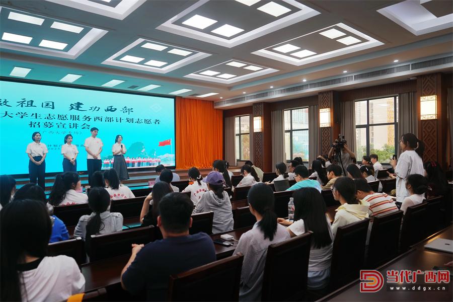 西部計(jì)劃廣西項(xiàng)目辦的項(xiàng)目專員向?qū)W子們解讀政策。記者 徐云潔 攝