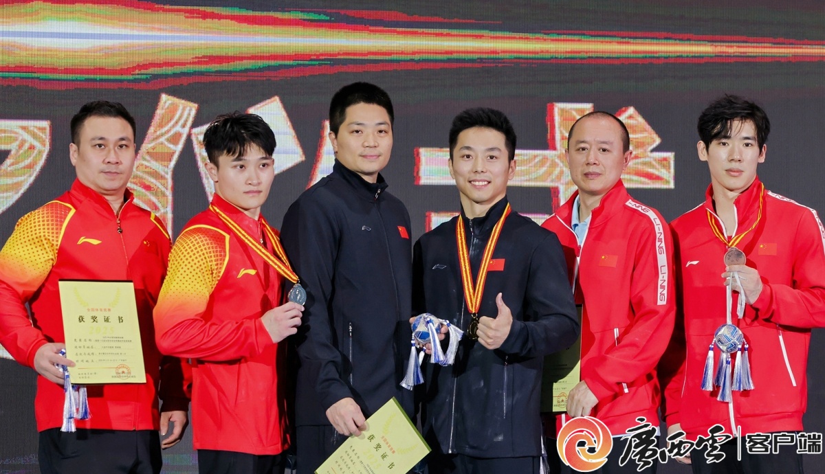 5月19日下午,正在南寧三塘體育比賽訓(xùn)練基地極限館進行的2025年全國體操錦標賽結(jié)束第五個比賽日爭奪,決出兩個項目名次。男子個人全能項目中,湖南選手張博恒、江蘇選手侍聰、廣西選手蘭星宇分別獲得金、銀、銅牌;男子鞍馬吊環(huán)雙杠全能項目則以江蘇老將尤浩勝出告一段落,廣西選手蘭星宇、湖南選手張博恒分列二、三名。