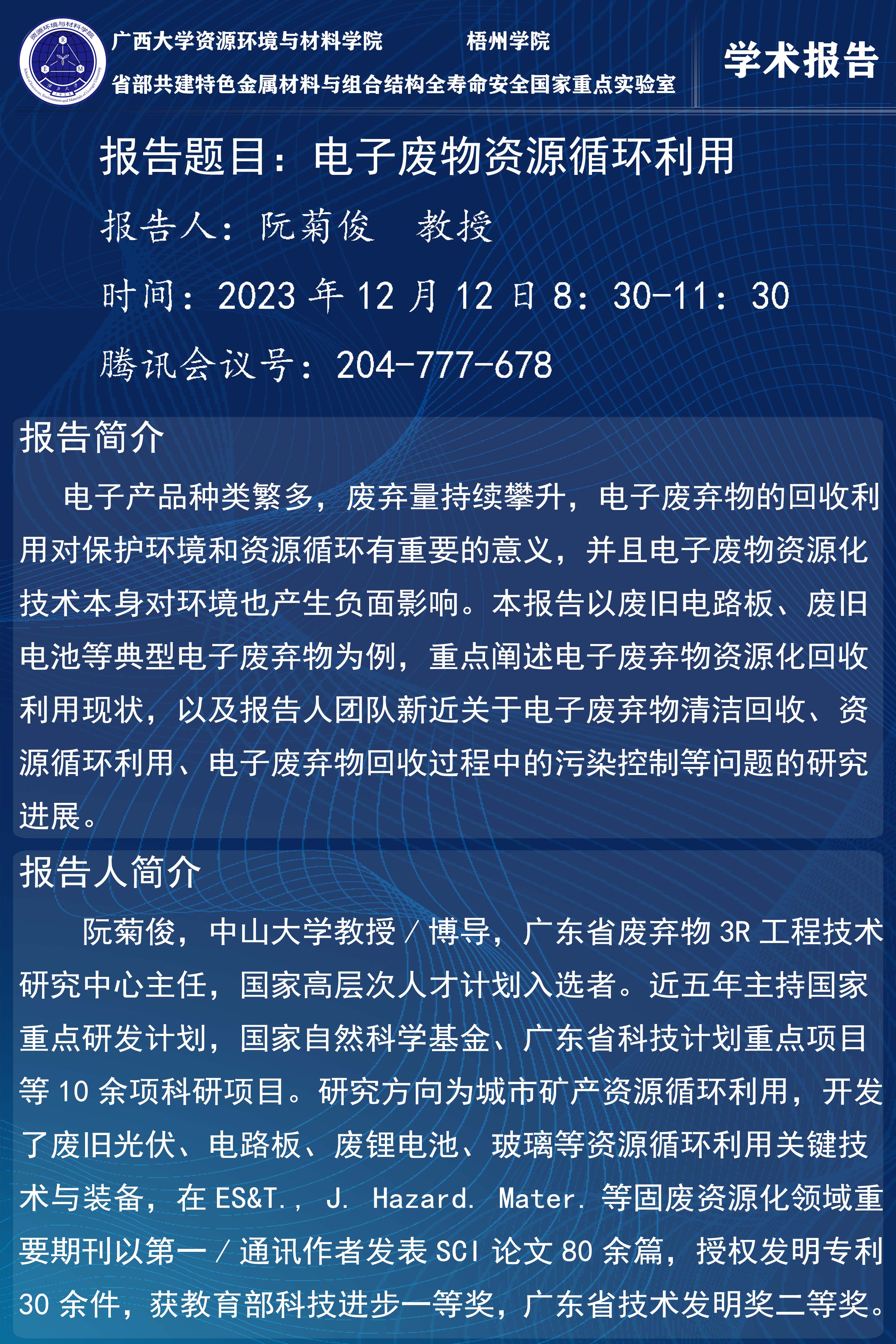 資源環(huán)境與材料學院學術報告:電子廢物資源循環(huán)利用